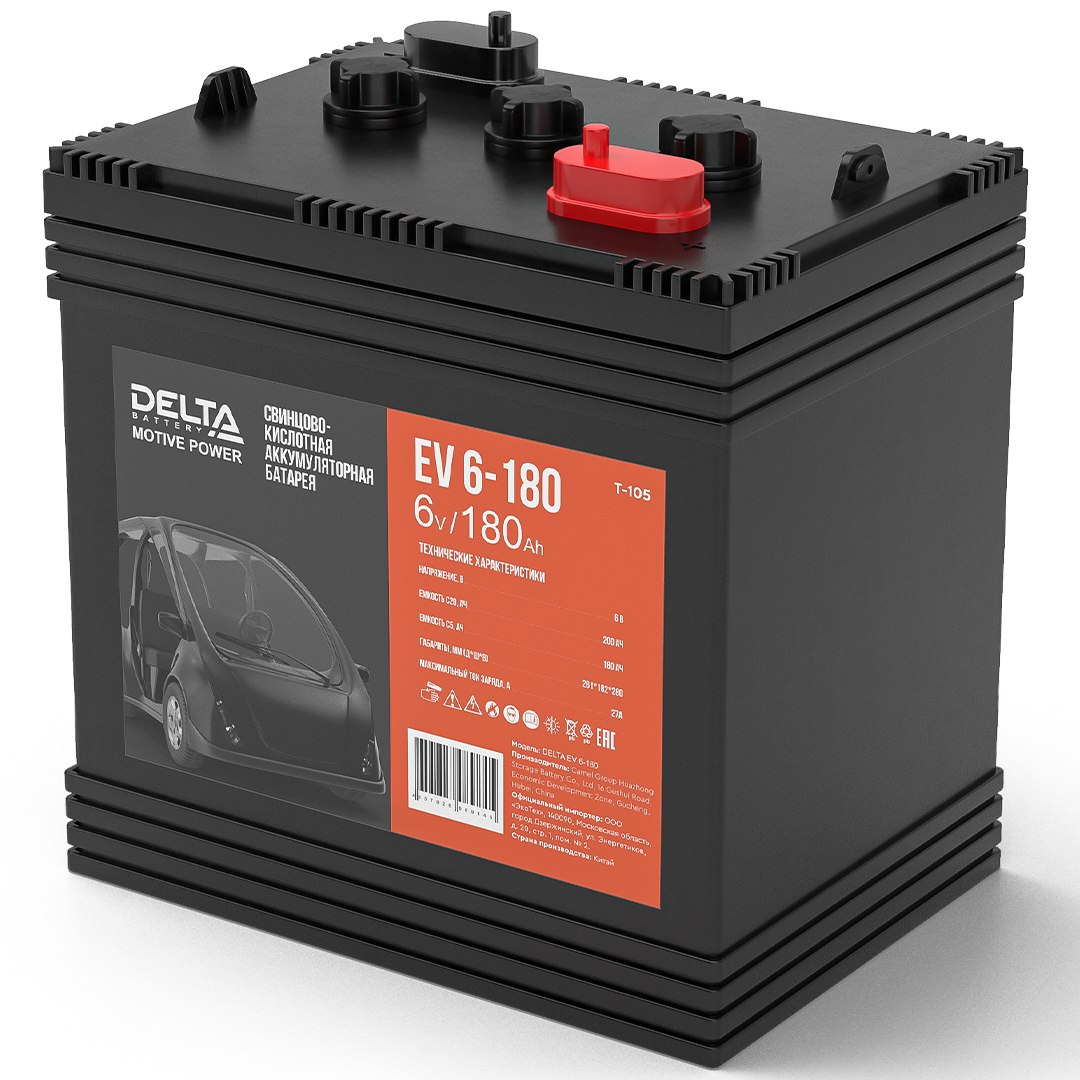Модель DELTA EV 6-180 — это высоконадежная тяговая аккумуляторная батарея с жидким электролитом, специально разработанная для эксплуатации в гольфкарах, клининговой и складской технике. Данная модель является полноценным аналогом T-105, предлагая идентичные характеристики с повышенным акцентом на долговечность и устойчивость к циклическим нагрузкам.