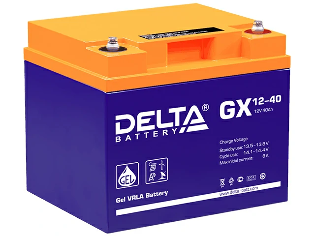 Свинцово-кислотные аккумуляторы Delta серии GX изготовлены по технологии GEL. В качестве электролита используется композитный гель, что обеспечивает устойчивость аккумуляторов Delta GX к глубоким разрядам и высокую температурную стабильность, а также увеличивает число циклов заряда/разряда, и продолжительность работы в тяжелых режимах. Аккумуляторы предназначены для работы как в буферном, так и в циклическом режимах. Рекомендуются для применения в автономных энергосистемах, а также совместно с системами на базе альтернативных источников энергии.