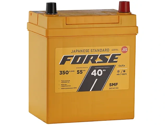 FORSE JIS – серия аккумуляторных батарей азиатских типоразмеров, относится к классу полностью необслуживаемых батарей. Мощные, выносливые, с высокими пусковыми токами.