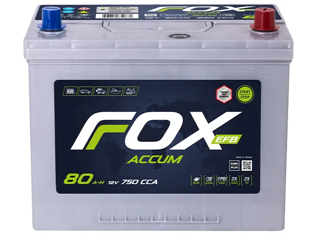 Особенностью EFB серии является увеличенная толщина токоотводов пластин, специальные сплавы свинца и добавки в активную массу. Благодаря этому, Аккумуляторы FOX EFB способны выдерживать вдвое больше циклов заряд-разряд, могут длительное время работать в недозаряженном состоянии без потери емкости и быстрее заряжаются от генератора, отличается более высокой продолжительностью срока службы по сравнению с обычным аккумулятором.