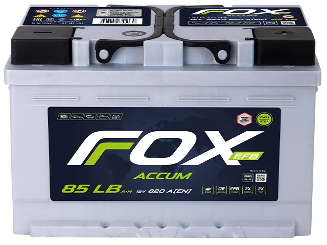 Особенностью EFB серии является увеличенная толщина токоотводов пластин, специальные сплавы свинца и добавки в активную массу. Благодаря этому, Аккумуляторы FOX EFB способны выдерживать вдвое больше циклов заряд-разряд, могут длительное время работать в недозаряженном состоянии без потери емкости и быстрее заряжаются от генератора, отличается более высокой продолжительностью срока службы по сравнению с обычным аккумулятором.