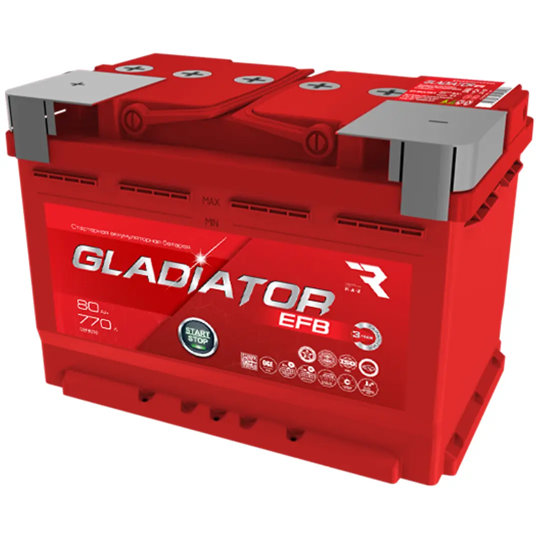GLADIATOR серии EFB - улучшенная стартерная батарея с жидким электролитом, имеющая ряд особенностей: