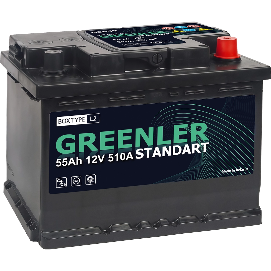 Аккумулятор автомобильный GREENLER GS550 55Ah 510А обратная полярность (242х175х190) — это высококачественный продукт от известного производителя аккумуляторов Greenler. Производится на мощностях завода «Zubr Energy» в республике Беларусь, который сертифицирован международными органами сертификации по стандартам ISO 9001:2015, IATF 16949:2016, ISO12001:2015.