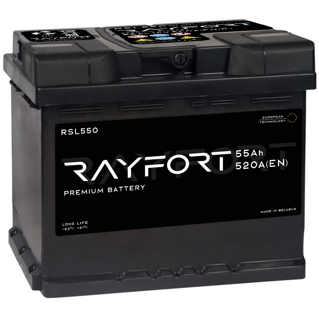 Аккумулятор RАYFОRТ RSL550 55Аh ОП 520А с низким типом корпуса – это высококачественная аккумуляторная батарея, произведенная на мощностях завода «Zubr Еnеrgy» в республике Беларусь.