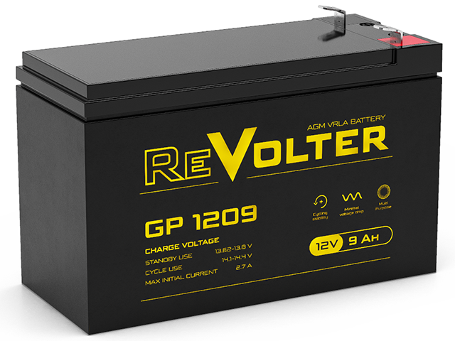 Тяговые свинцово-кислотные аккумуляторы ReVolter серии GP — это герметичные, необслуживаемые батареи с системой рекомбинации газов (VRLA). Они изготовлены по технологии AGM (Absorbent Glass Mat), при которой электролит абсорбируется в стекловолоконном сепараторе. Эти аккумуляторы универсальны и подходят как для буферного, так и для циклического режима эксплуатации, что делает их идеальными для использования в различных переносных приборах и стационарных системах резервного питания. Срок службы в буферном режиме – до 5 лет.