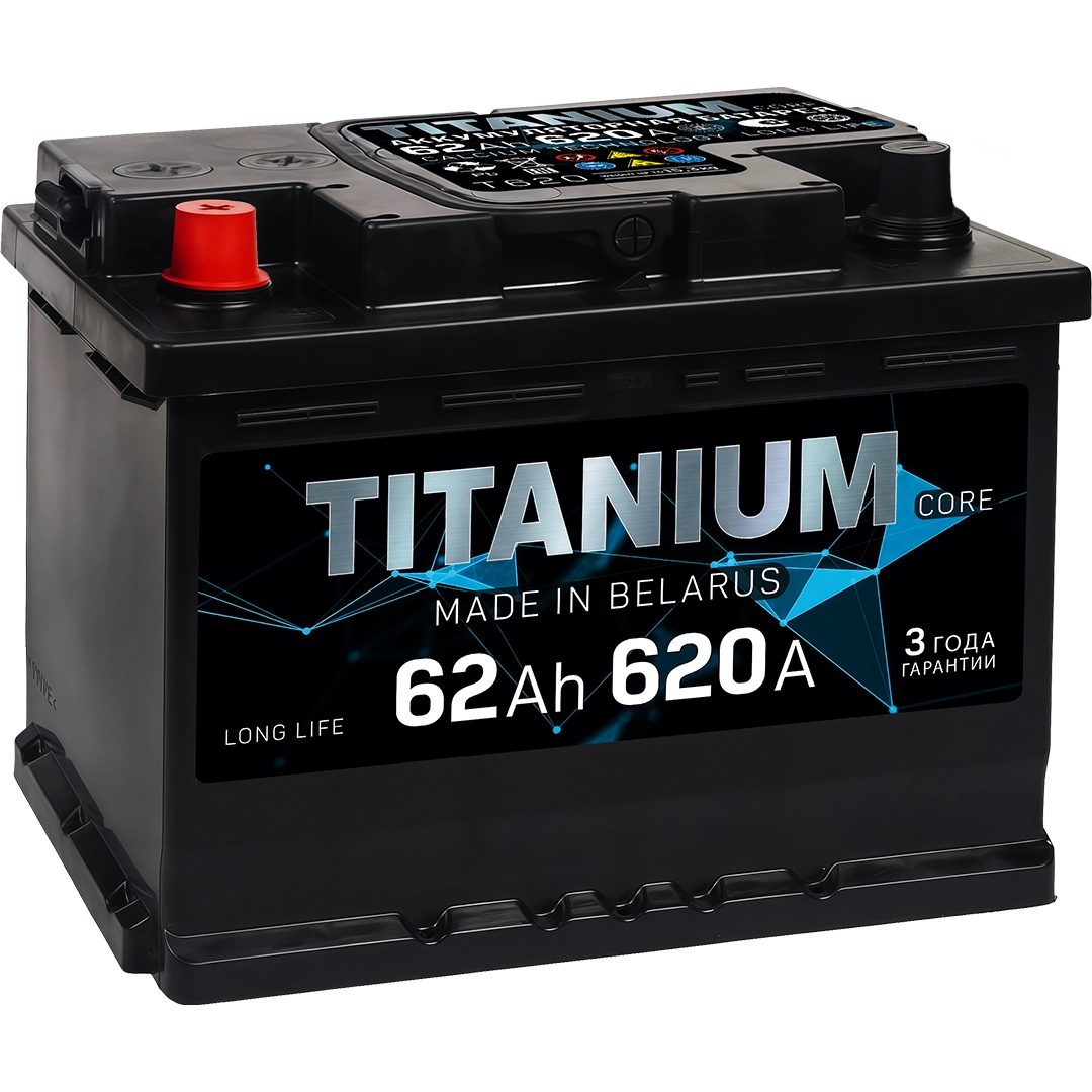 TITANIUM Core – это премиальная линейка необслуживаемых батарей, при производстве которых применён ряд инновационных технологий, которые способствуют высоким эксплуатационным характеристикам и длительному сроку службы аккумулятора.