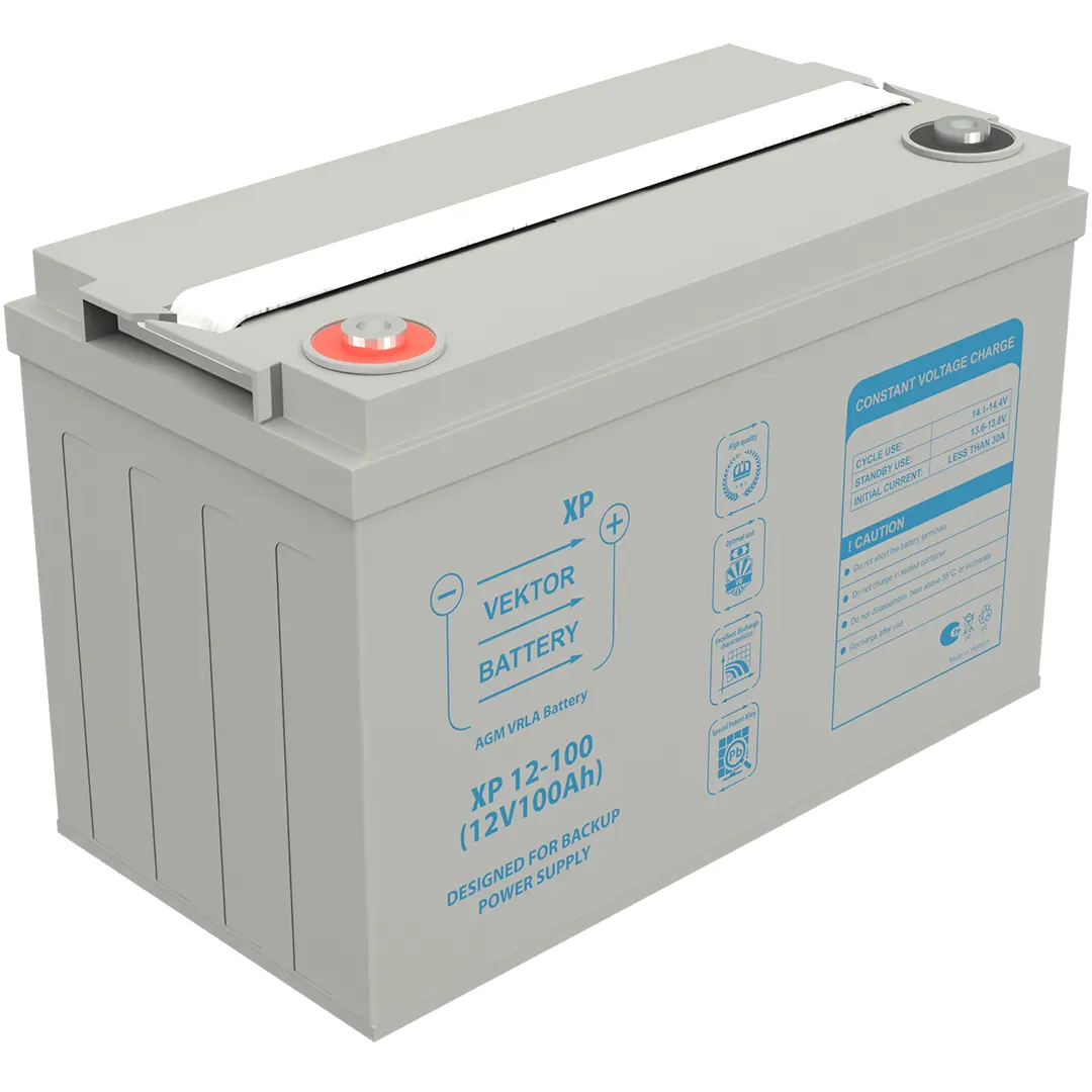 Аккумуляторная батарея VEKTOR Battery XP12-100 — это надежное решение для резервного и автономного электропитания. Благодаря технологии AGM (Absorbent Glass Mat) аккумулятор имеет низкий уровень саморазряда, устойчив к вибрациям и не требует обслуживания. Он идеально подходит для систем бесперебойного питания (ИБП), автономных источников энергии для газовых котлов, охранных систем, а также для использования в судоходстве и системах «Умный дом».