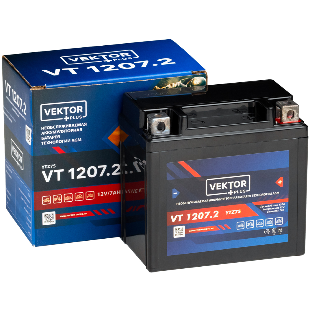 VEKTOR PLUS VT 1207.2 (YTZ7S) — необслуживаемая свинцово-кислотная аккумуляторная батарея AGM-типа, предназначенная для запуска двигателей. Герметичная конструкция исключает необходимость обслуживания и обеспечивает стабильную работу в условиях вибраций и температурных перепадов. Благодаря высоким пусковым характеристикам аккумулятор подходит для современной мототехники с повышенными требованиями к мощности запуска.