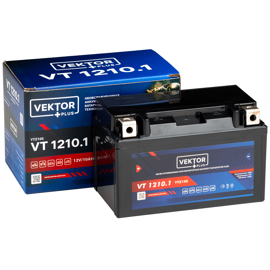 VEKTOR PLUS VT 1210.1 (YTZ10S) — необслуживаемая свинцово-кислотная аккумуляторная батарея AGM-типа, предназначенная для запуска двигателей. Герметичная конструкция исключает необходимость обслуживания и обеспечивает стабильную работу при вибрациях и перепадах температур. Модель отличается высокой пусковой мощностью и подходит для техники с повышенными требованиями к запуску.