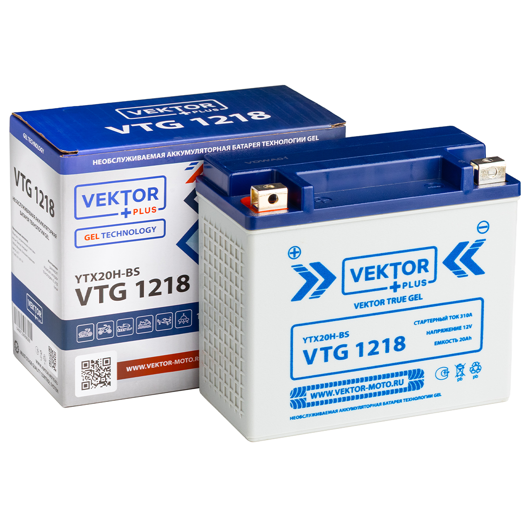 VEKTOR PLUS VTG 1218 (YTX20H-BS) — свинцово-кислотная аккумуляторная батарея, выполненная по технологии GEL, предназначенная для запуска двигателей. Аккумулятор полностью готов к эксплуатации сразу после покупки и обеспечивает стабильную работу даже при экстремальных температурах. Гелевая технология повышает устойчивость к глубоким разрядам и увеличивает срок службы.