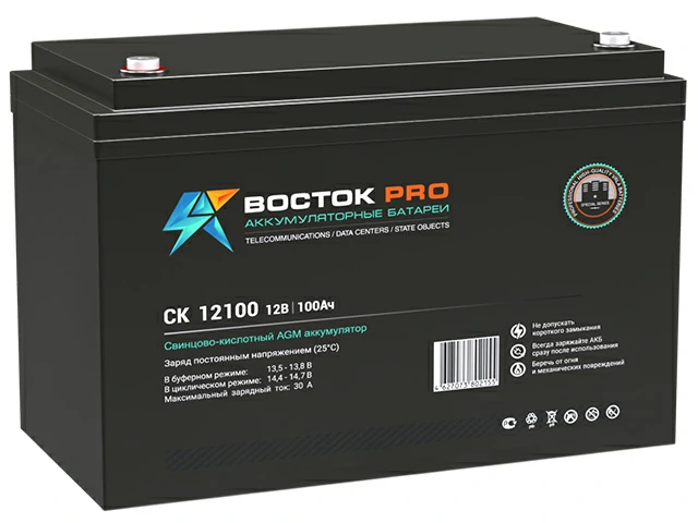 Свинцово-кислотные аккумуляторы Восток серии CK предназначены для использования в системах бесперебойного питания, резервного энергоснабжения, автономных энергосистемах. Изготовлены по AGM технологии (электролит, абсорбированный в стекловолоконном сепараторе), являются герметизированными и необслуживаемыми, со сроком службы в буферном режиме до 10 лет. Обладают высокими разрядными и эксплуатационными характеристиками благодаря использованию в составе электролита и намазной пасты специальных добавок, препятствующих коррозии и замедляющих процесс старения.