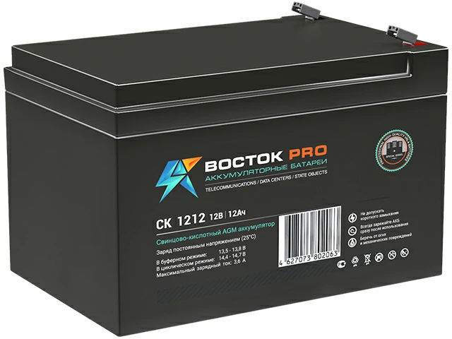 Свинцово-кислотные аккумуляторы Восток серии CK предназначены для использования в системах бесперебойного питания, резервного энергоснабжения, автономных энергосистемах. Изготовлены по AGM технологии (электролит, абсорбированный в стекловолоконном сепараторе), являются герметизированными и необслуживаемыми, со сроком службы в буферном режиме до 10 лет. Обладают высокими разрядными и эксплуатационными характеристиками благодаря использованию в составе электролита и намазной пасты специальных добавок, препятствующих коррозии и замедляющих процесс старения.