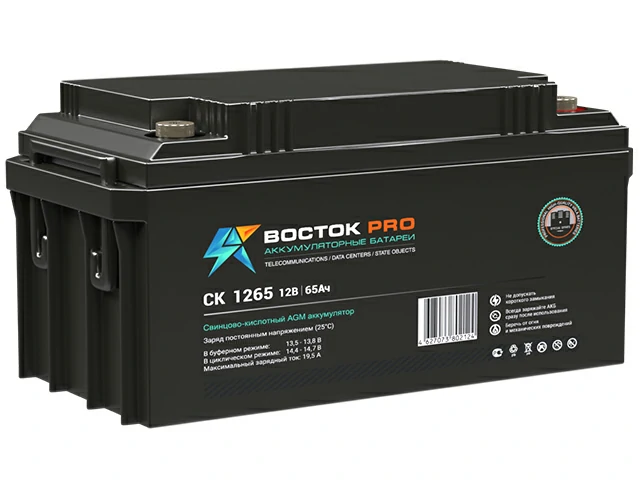 Свинцово-кислотные аккумуляторы Восток серии CK предназначены для использования в системах бесперебойного питания, резервного энергоснабжения, автономных энергосистемах. Изготовлены по AGM технологии (электролит, абсорбированный в стекловолоконном сепараторе), являются герметизированными и необслуживаемыми, со сроком службы в буферном режиме до 10 лет. Обладают высокими разрядными и эксплуатационными характеристиками благодаря использованию в составе электролита и намазной пасты специальных добавок, препятствующих коррозии и замедляющих процесс старения.