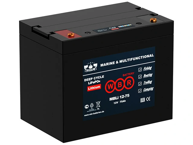Литиевые (LiFePO4) герметизированные лодочные аккумуляторные батареи WBR Marine серии MBLi – это высококачественные и надежные аккумуляторы, специально разработанные для морского транспорта и плавучих сооружений. Эти аккумуляторы обладают выдающимися характеристиками, включая высокую цикличность, устойчивость к глубоким разрядам и значительно более длительный срок службы по сравнению с традиционными свинцово-кислотными аккумуляторами.